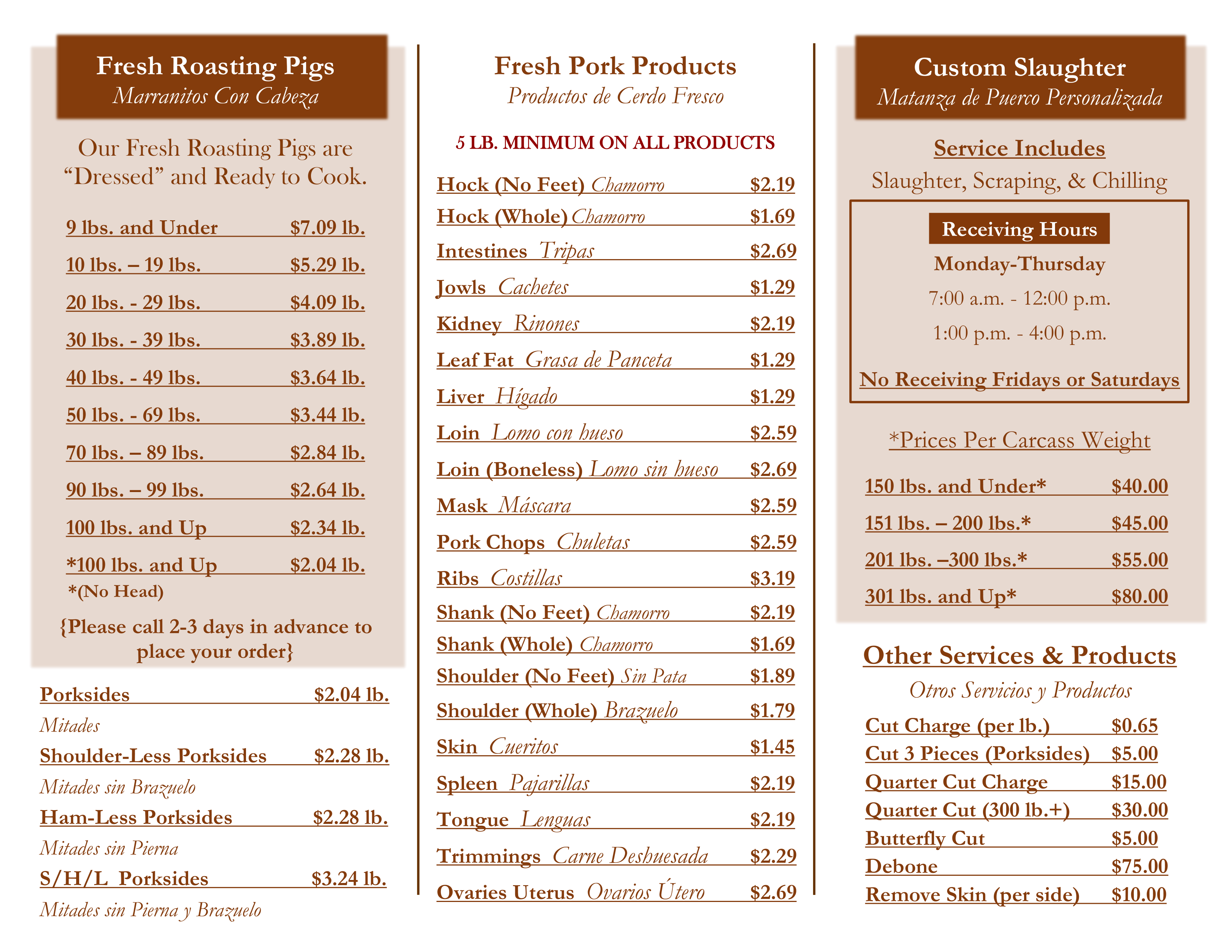 J&J Packing Company, Inc. is a USDA federally inspected pork products distributor. J&J Packing is also a quality conscious wholesaler serving grocery stores, restaurants, and additional retail food outlets in the Houston area and the surrounding Texas counties. We have a well-established reputation for supplying the finest roasting pigs and other pork products. J&J Packing has been family owned and operated by Terry and Robyn Luedtke since 1998. The plant has been in continuous operation for more than 50 years.